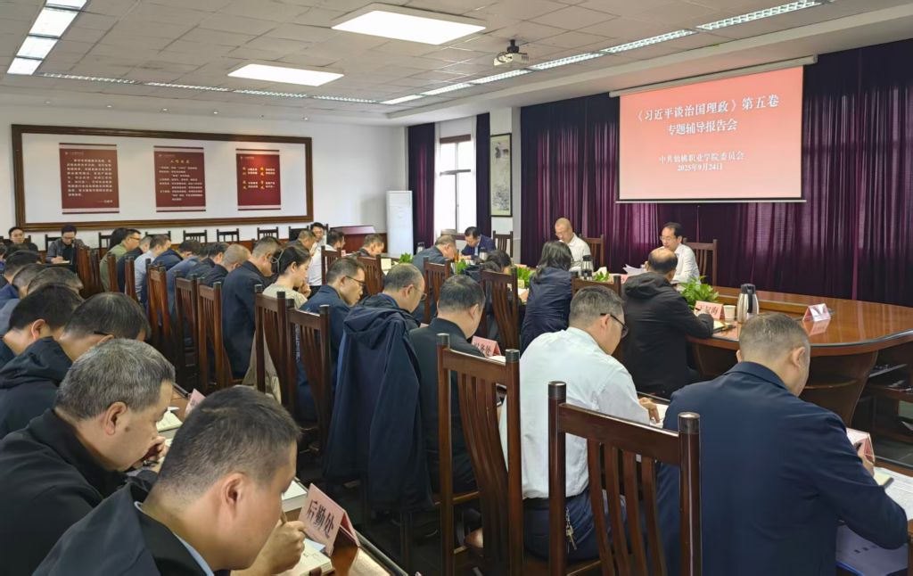 9月24日上午,党委书记邓念国主持党委理论学习中心组集体(扩大)学习《习近平谈治国理政》第五卷专题辅导报告会,市委宣讲团成员、学院院长李立勇作专题辅导报告。