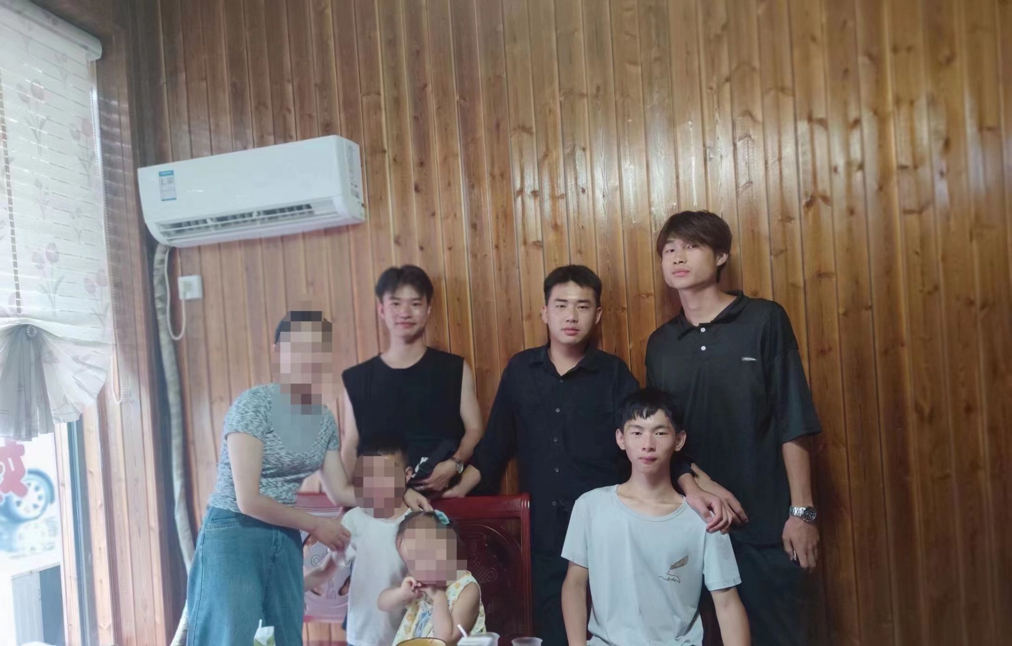 获救母女与向帅(后排左二)、佘林桥(后排左四)合影
