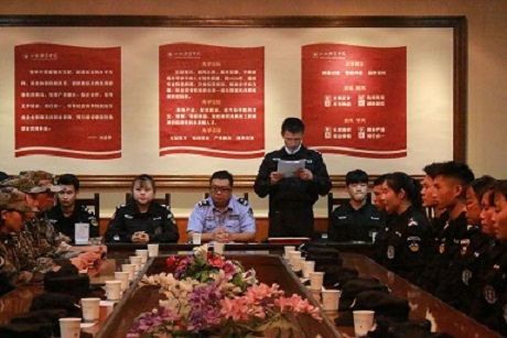 2018年5月25日中午12点,在勤政楼五楼会议室举行了16届换届退伍仪式,由王赛郎担任主持人,出席本次会议的有保卫处处长李连锁,15,16届的学长学姐,17届辅警大队的新生以及各院系中队和预备役的干部。大会第一项由大队长王心愿做工作汇报,第二项由主持人宣布突出队员、优秀辅警干部、优秀辅警队员得主并为他们颁奖,第三项竞选大队长,大队指导员,警务中队长这三个职位,由主持人宣布竞选规则后开始了。第四项是16届队员退伍,十送红军渲染背景气氛,许多队友都不舍,默默的擦眼泪,这意味着她们肩上的担子交给了17届的新生,这一天,是结束,但同时,也是新的开始。